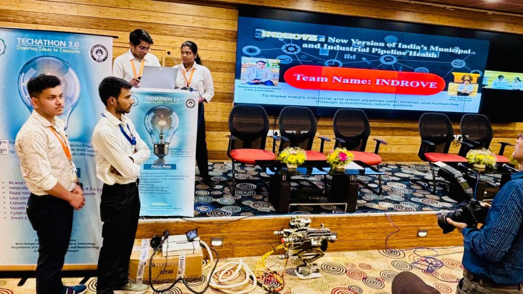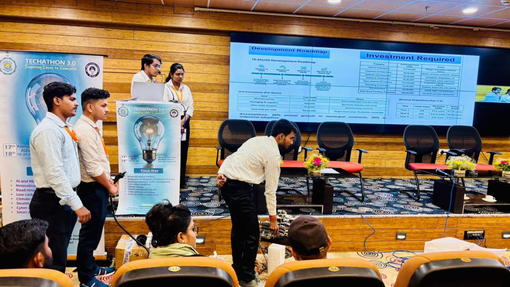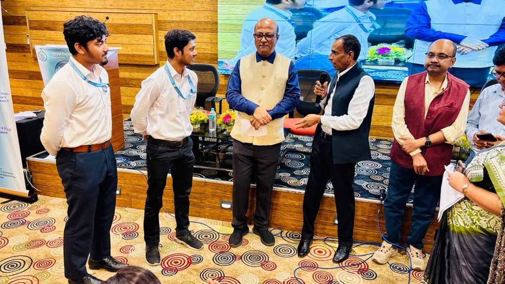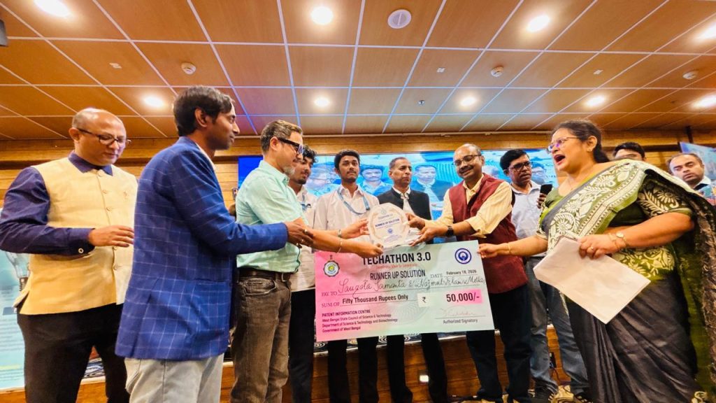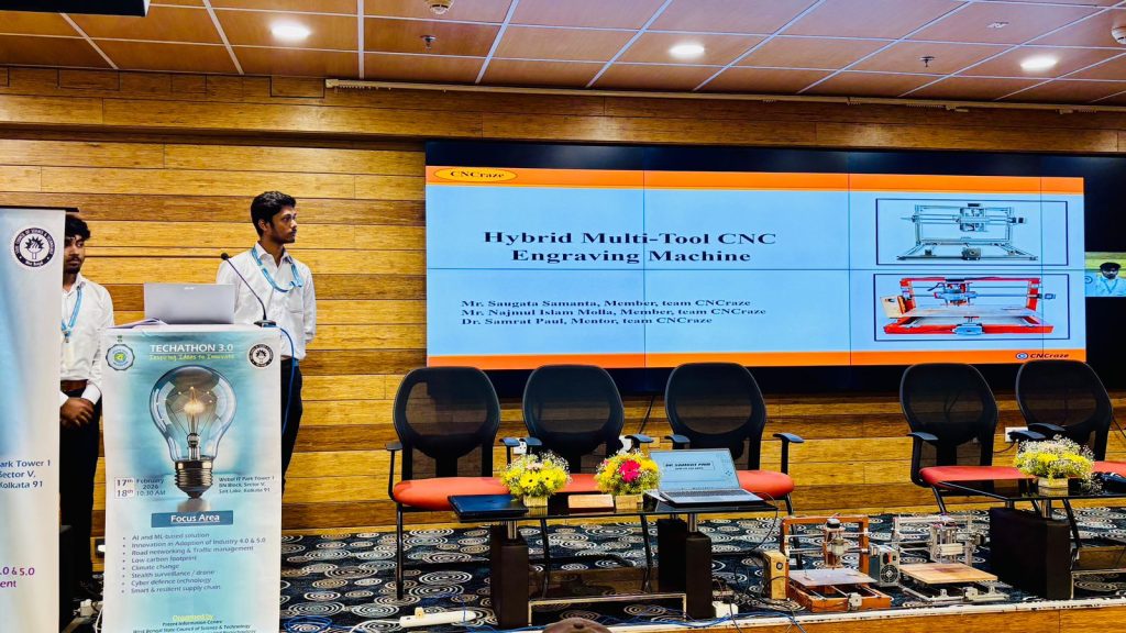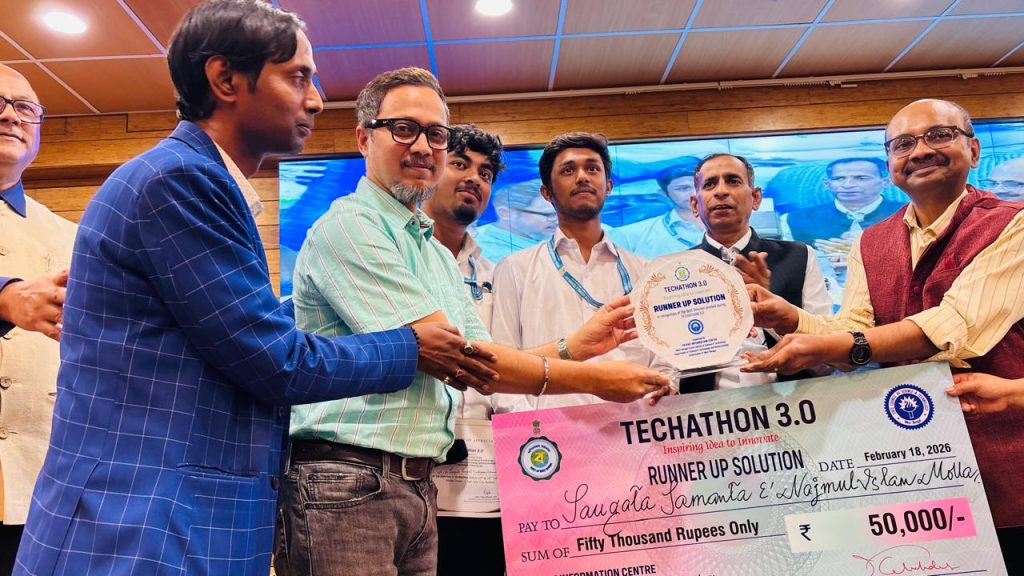Mr. Saugata Samanta and Mr. Najmul Islam Molla, 3rd-year students of the Department of Electrical & Electronics Engineering (EEE), have secured the Runner-Up Solution (2nd Position) at the prestigious TECHATHON 3.0. Their innovative solution was recognized among 28 shortlisted best solutions presented by students from various institutions in the second round of the competition.